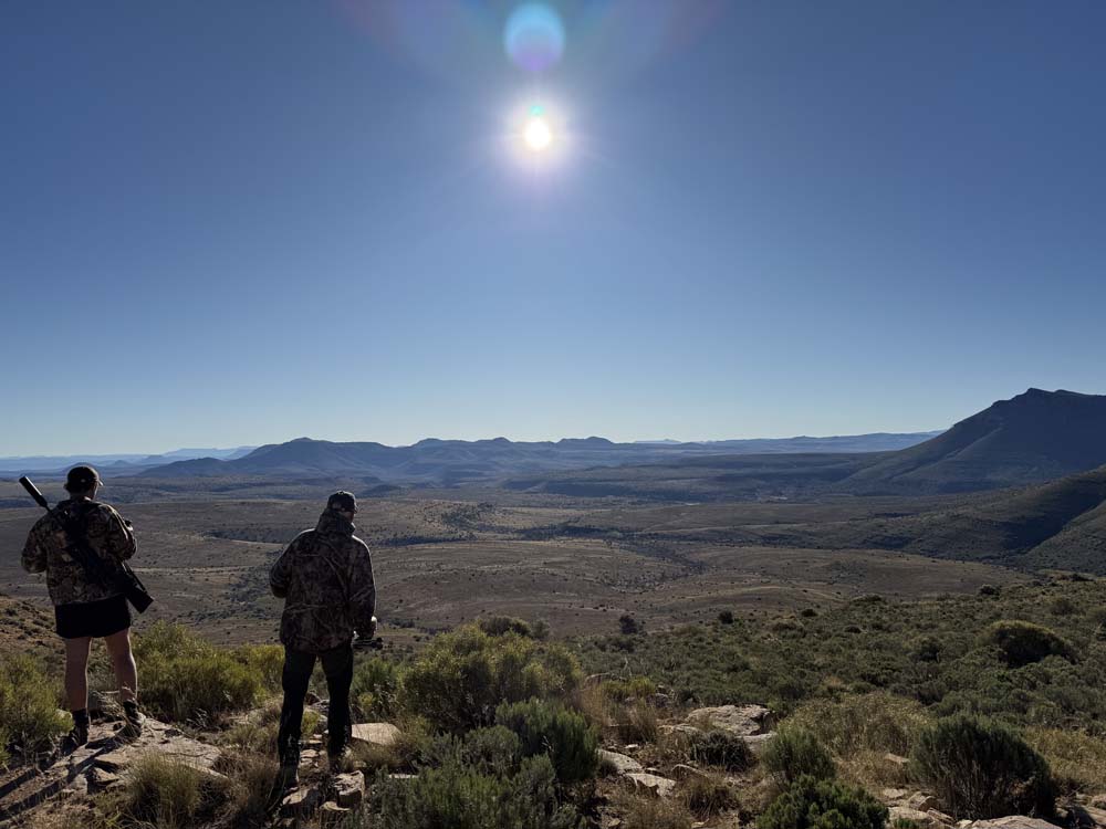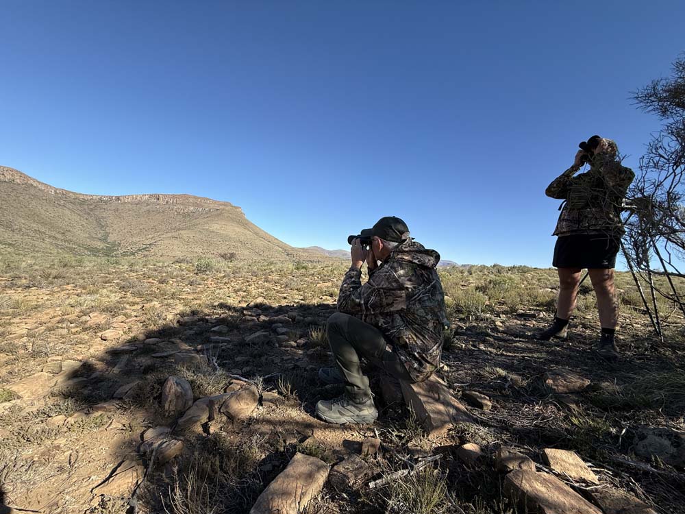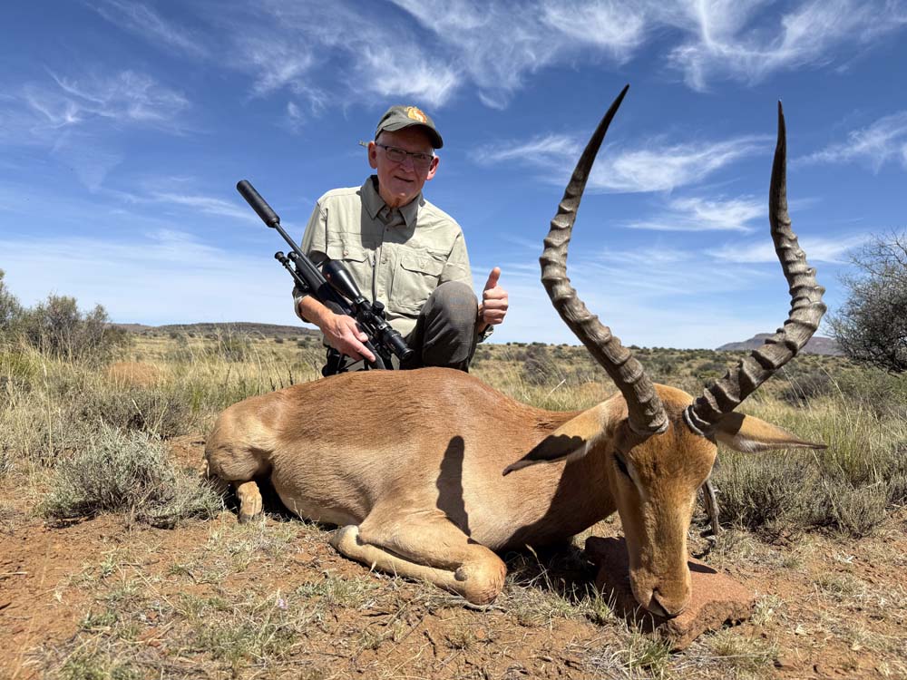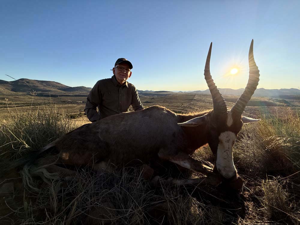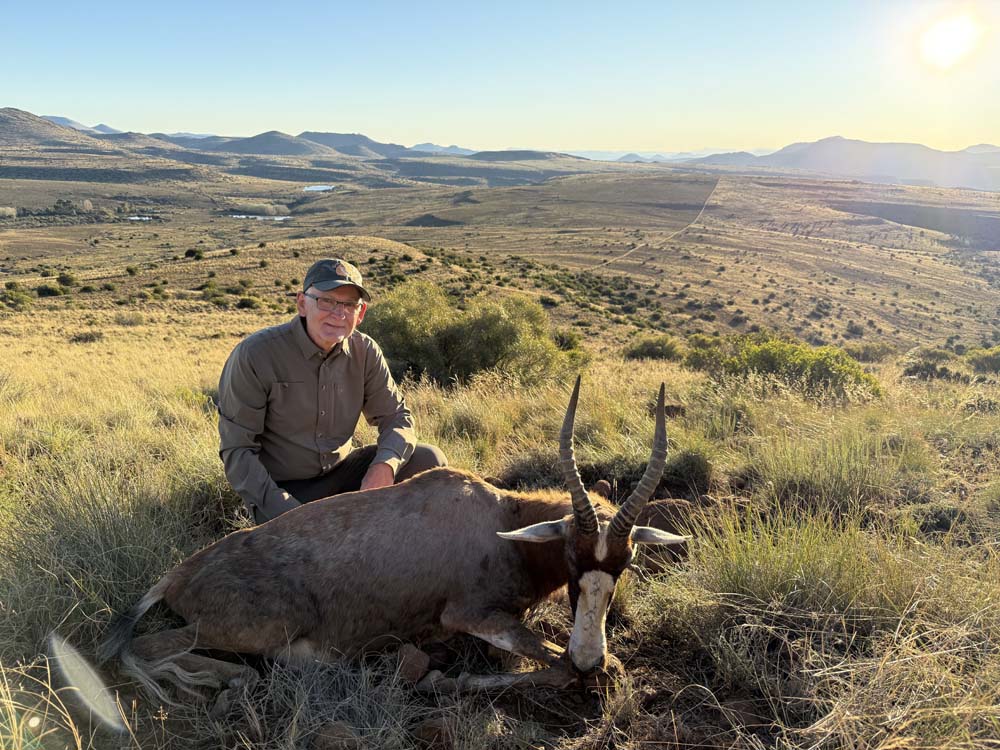 At det er en krævende jagt, fandt vi bestemt ud af, da jeg ønskede af nedlægge en Blesbuch. Vi fandt den i bjergene, men måtte pürsche fra det ene sted til det andet. Ind i bilen og om på den anden side af bjerget igen, pürsche igen op og ned i bjergene, men vi blev snydt gang på gang. Først efter 7 timer lykkedes det at komme på skudhold højt oppe fra, så jeg kunne skyde ned i en vinkel på 45 grader. Jeg fik min Blesbuch.