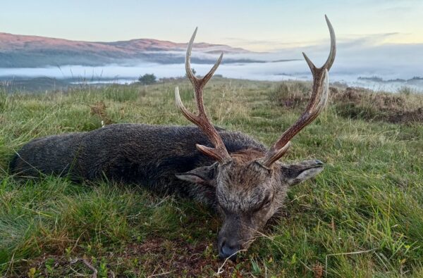 1 Kron & 1 Sikahjort pr. jæger uanset str. efter skyttens anvisning, skotsk ansvarsforsikring samt al transport ifm. m. jagten fra aftalt mødested nær reviret.